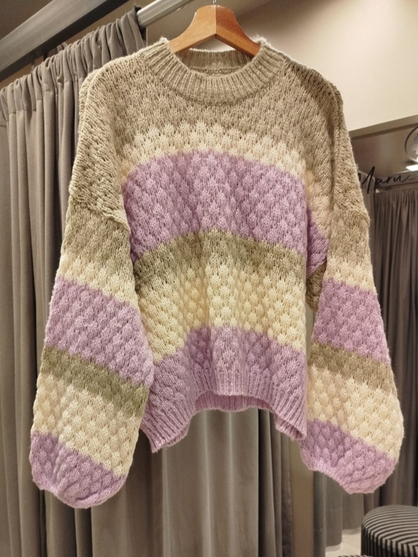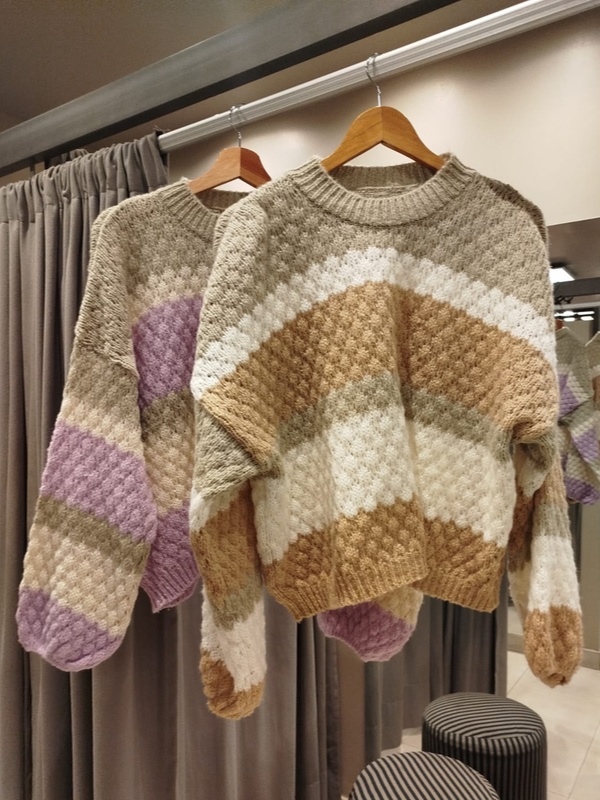 BUZO OVERSIZE ESTILO ROMANTICO, CON UN TEJIDO MUY DELICADO Y COLORES DE TEMPORADA. MANGA GLO Y HOMBROS CAIDOS .